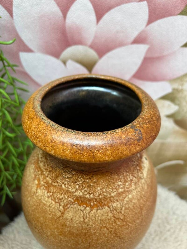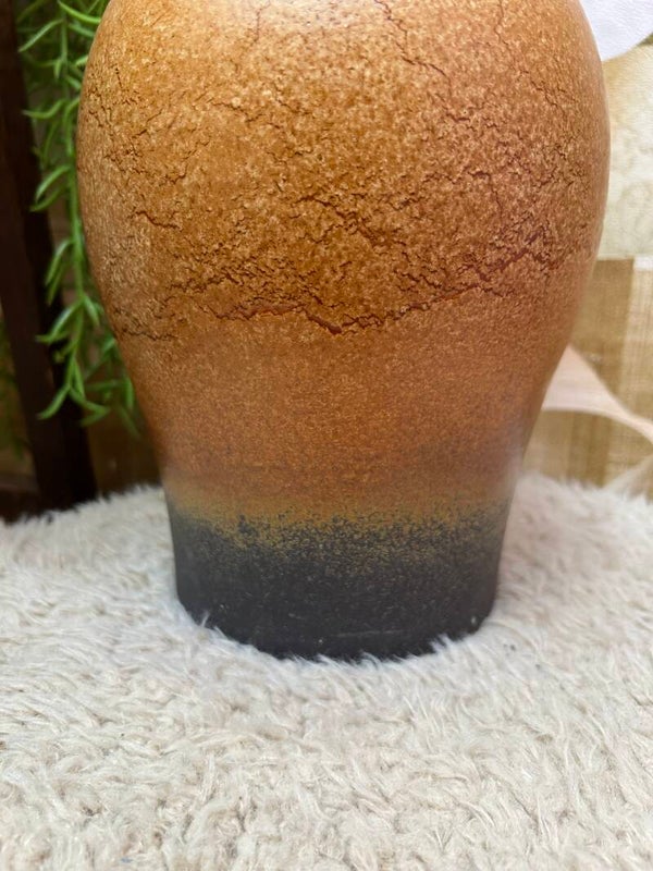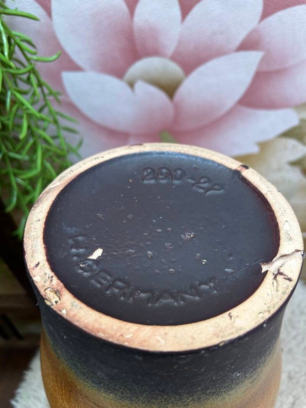Prachtige vintage vaas uit de West-Germany collectie 🇩🇪. Deze keramieken vaas heeft een warme bruin-oranje glazuur met een speels verloop naar donker aan de onderzijde 🌿. Het klassieke, tijdloze ontwerp maakt dit item ideaal voor zowel een retro als een modern interieur.