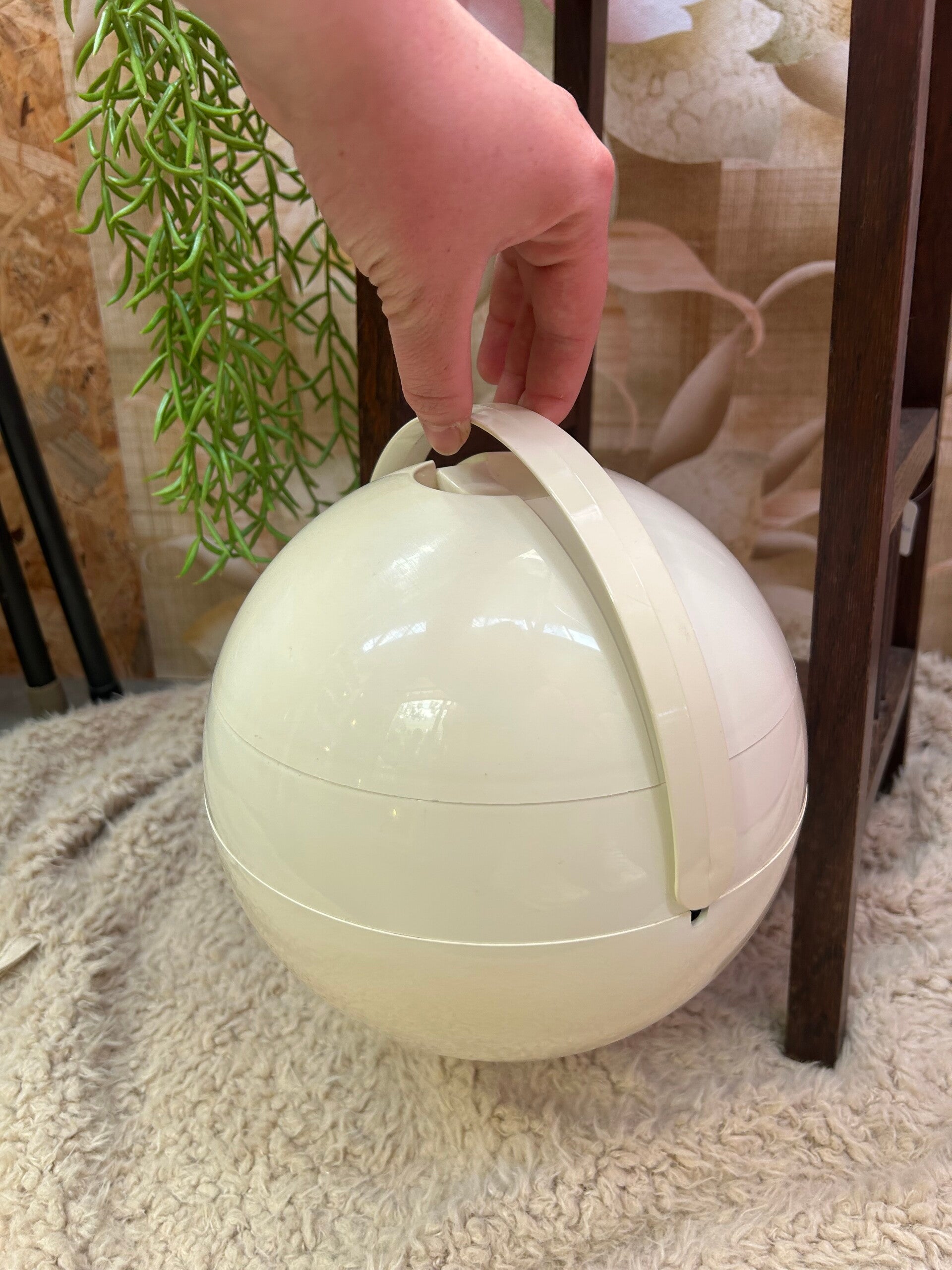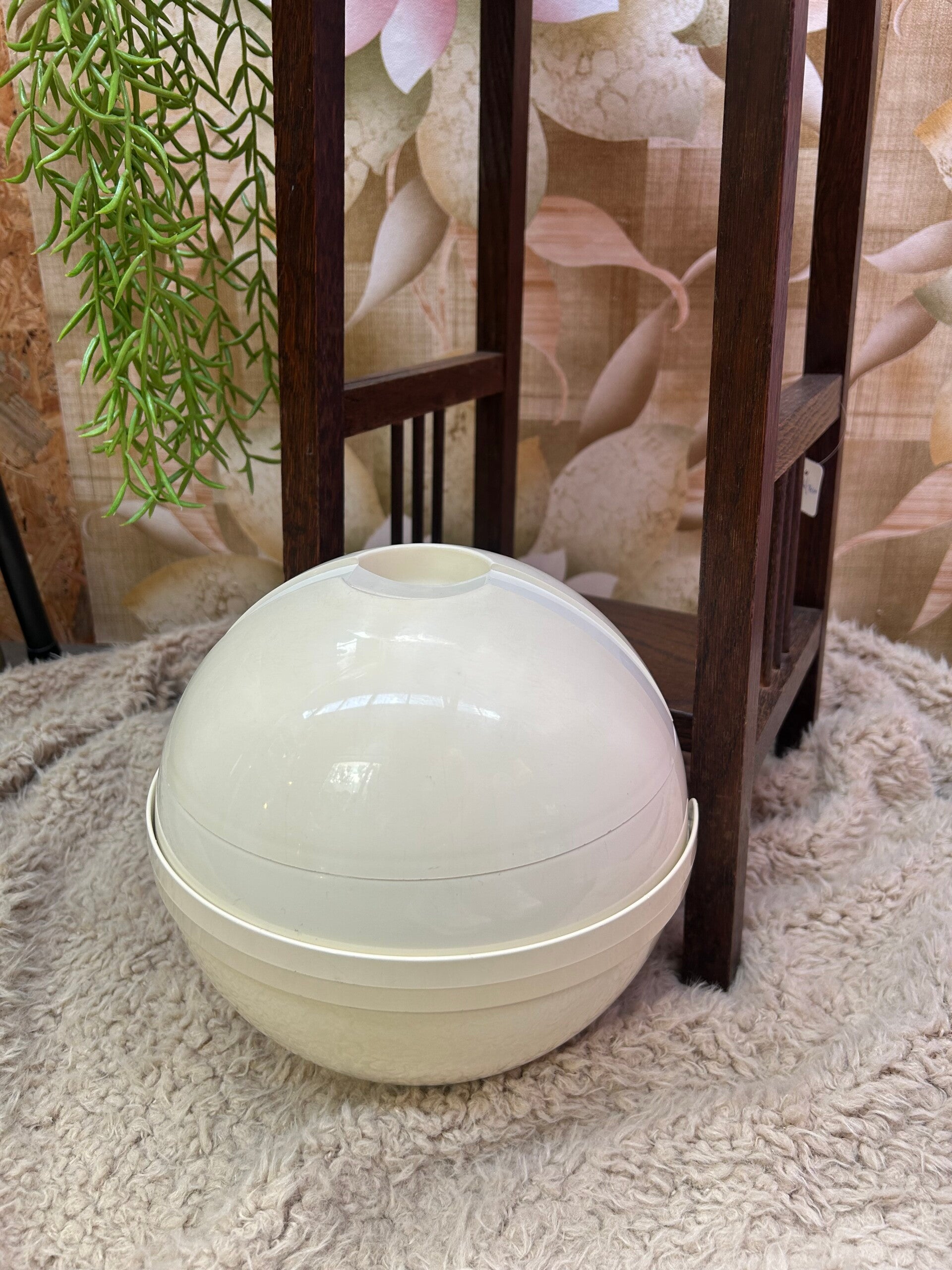 Kleur: Creme witMateriaal: PlasticDiameter: 19cmTijdperk: Jaren 70Staat: Lichte gebruikerssporen rondom